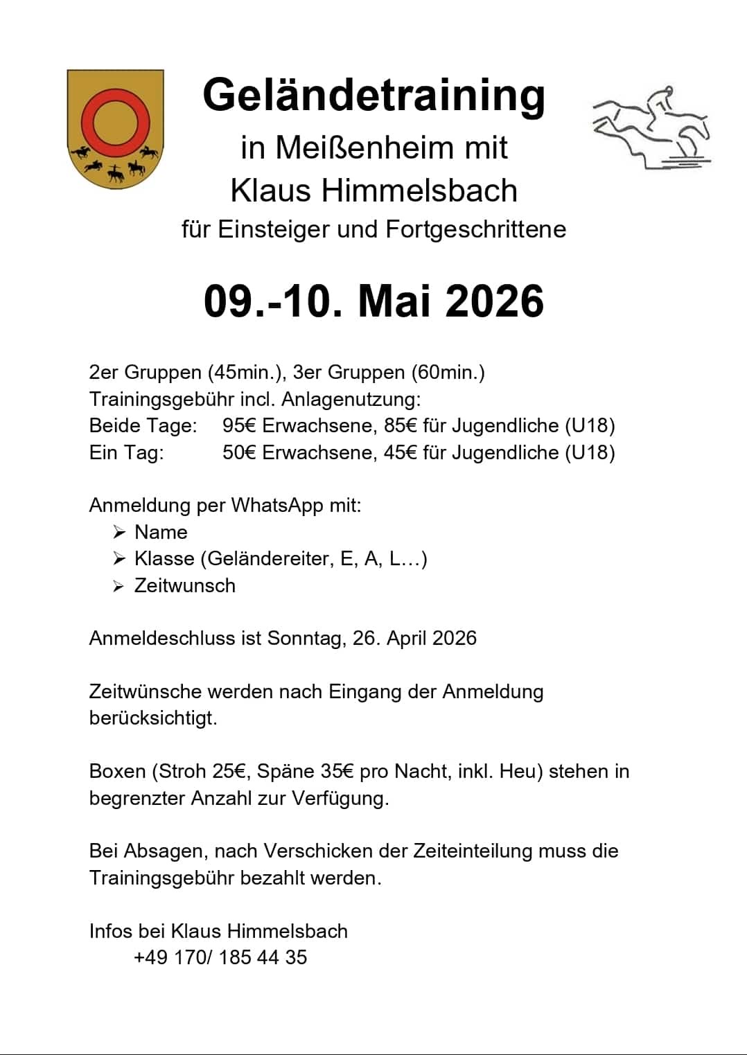 Schickt jetzt eine Mail an Klaus Kern lehrgangrrfv@t-online.de und sichert euch Boxen für euren Wunschtermin. Wir freuen uns auf euch!!